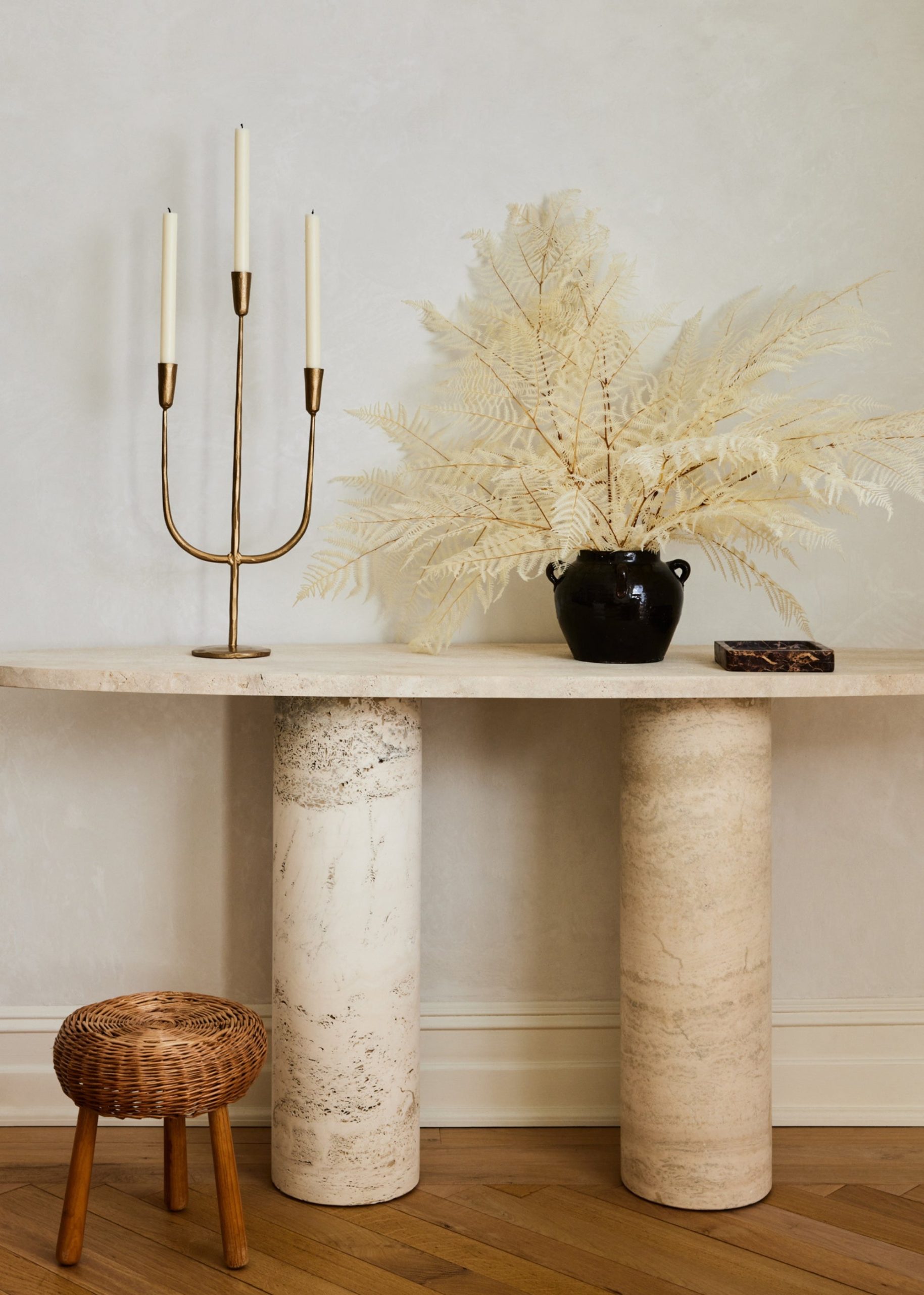 The Found Clay Jar is a dramatic table vase perfect for elevating any faux floral arrangement. It features a distressed finish that may range in color from dark brown to black, and its small handles add elegance and character. Style this round vessel with artificial flowers or dried botanicals to create a minimalist design that serves as a sophisticated statement centerpiece for your home decor.