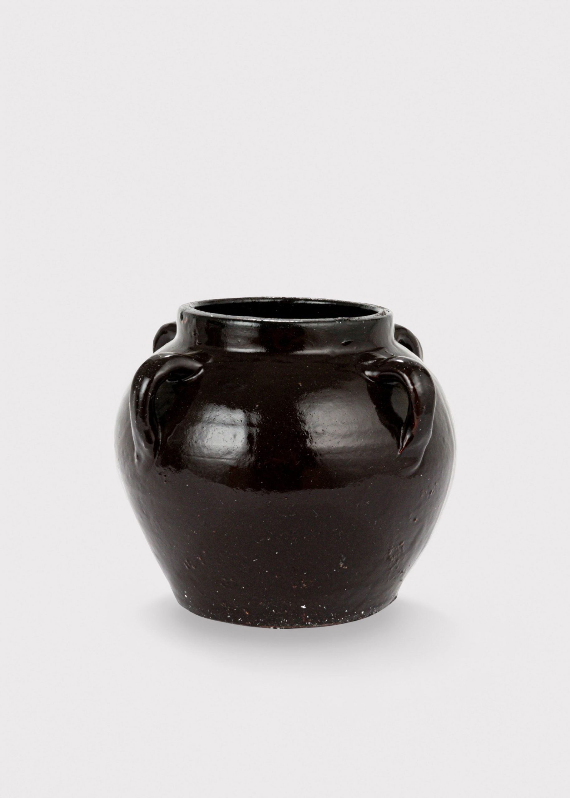 distressed clay round jar vase in dark brown black hue 6.75"Distressed Clay Round Jar Vase in Dark Brown Black Hue – 6.75″